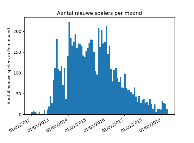 Grafiekje: aantal nieuwe spelers per maand