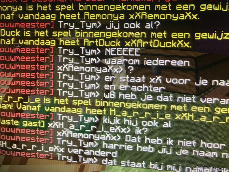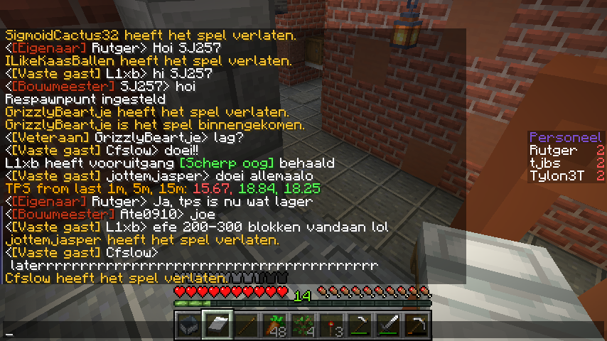 Het kleurenschema van de chat is iets aangepast. Voor de update naar 1.17 waren de kleuren wat lichter. Alleen, het heel was lastig leesbaar op Discord, en het rood vond ik net iets te rozig. Daarom zijn alle kleuren nu wat donkerder geworden. En daarnaast is de kleur van de privéberichten en groepen veranderd van oranje naar paars, omdat oranje teveel op de andere kleuren begon te lijken.